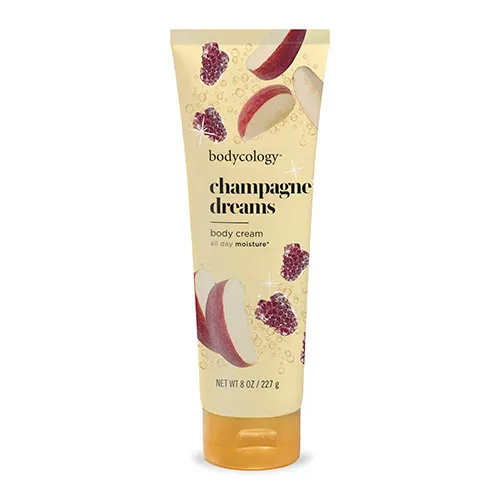 Experience the luxury of bodycology Champagne Dreams Body Cream, a creamy, nourishing formula that leaves your skin feeling moisturized and soft. Enriched with Vitamin E, shea butter, cocoa butter and jojoba oil, this non-greasy body cream provides long-lasting hydration. The bright scent of sparkling tangerine and warm vanilla transforms any moment into a radiant celebration.