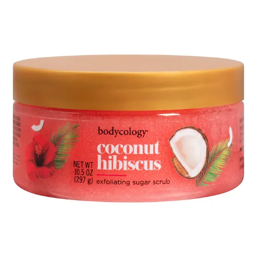 Elevate your shower routine with the Bodycology Coconut Hibiscus Exfoliating Sugar Scrub. This tropical-inspired scrub gently buffs away dry, dull skin with natural sugar crystals, revealing smoother skin. Enriched with moisturizing shea butter to soften and moisturize your skin while surrounding you in the lush, exotic fragrance notes of creamy coconut and blooming hibiscus. These notes will delight you with a trip to the tropics. Perfect for daily use, this scrub transforms your skincare routine into a tropical escape.